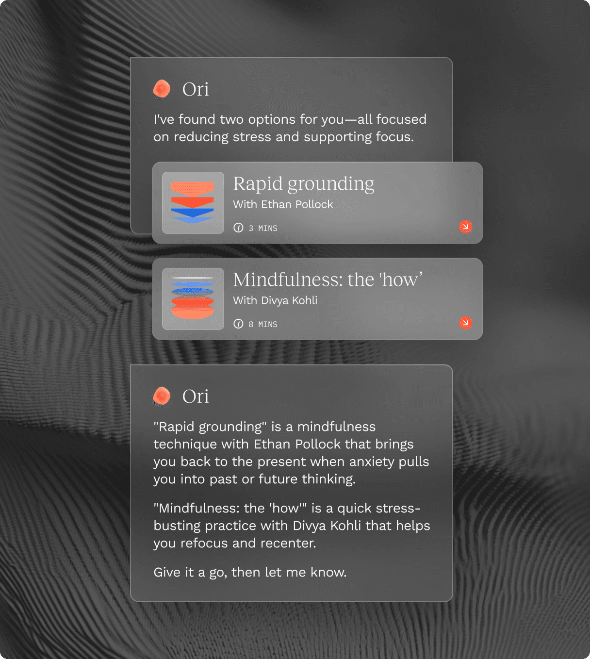Powered by the WONE Index, WONE’s AI Coach, Ori, delivers personalized human expert led "rapid resets" in the flow of work, helping teams recenter, restore clarity, and sustain focus. Unlike EAPs or content libraries that support people after stress has escalated, Ori recommends evidence-based micro-interventions (breathwork, cognitive reframing, movement, nutrition) personalised to each individual when they’re needed. The result is faster recovery, steadier decision-making, and fewer performance dips before burnout takes hold.